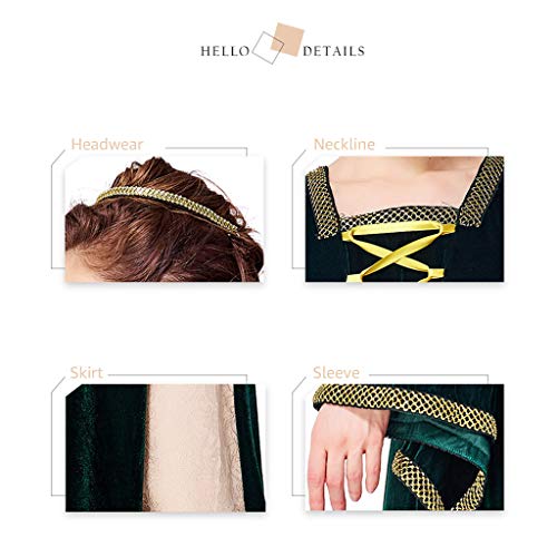 PROTAURI Disfraz de Reina de Halloween para Mujer - Medievales Vestido Vintage Princesa Cosplay Damas Fiesta Vestido Carnaval Outfits, Verde, XXL