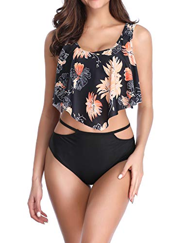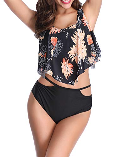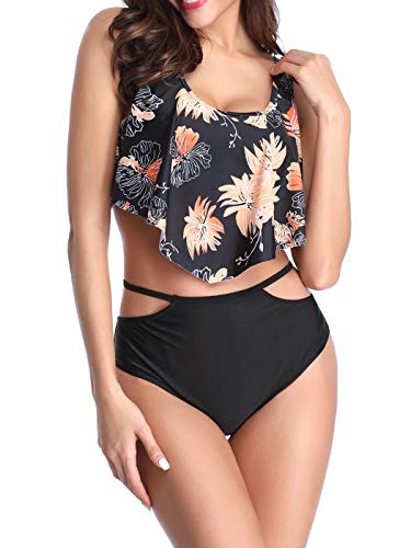 HenzWorld Traje de Baño de 2 Piezas para Mujer Sujetador con Volantes Vintage Tops Trajes de Baño Bikini para Mujer Conjuntos de Tankini (Tamaño Negro 12-14)