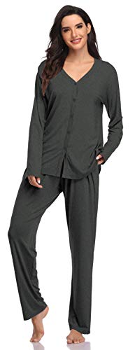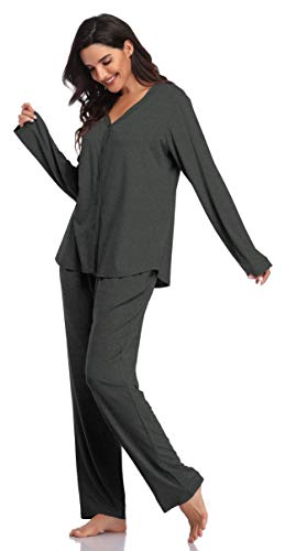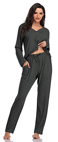 SHEKINI Pijamas Mujer Modal 2 Piezas Pijama Manga Larga Pantalones Suaves y Cómodos(Gris Oscuro,XL)
