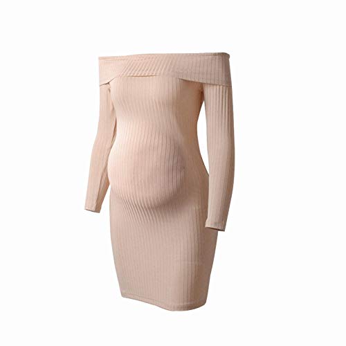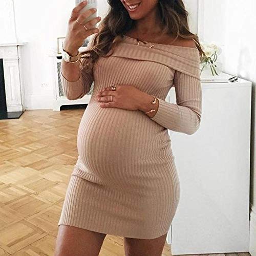 - Vestido de color sólido de mamá mamá hombro embarazada
