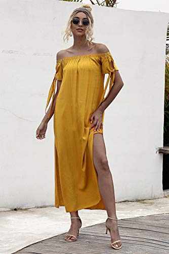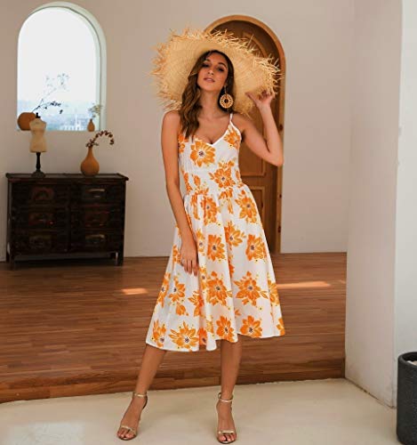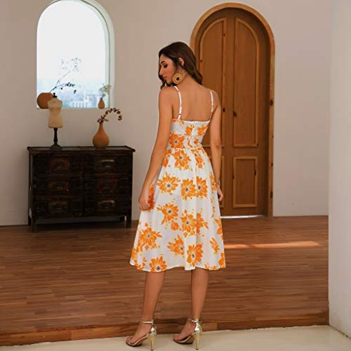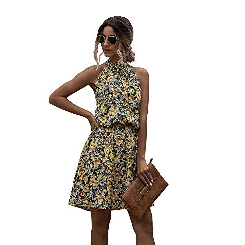 ZWH 2019 Amazon Ebay Wish Wish Separe Summer Profundo V-Care Imprimir Sexy Vestido de Verano Falda Larga (Color : Yellow, Size : XL)