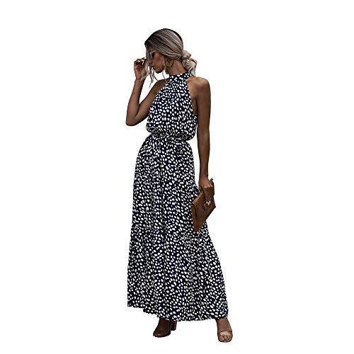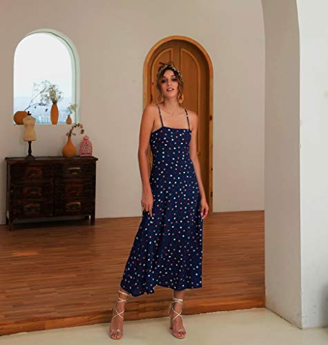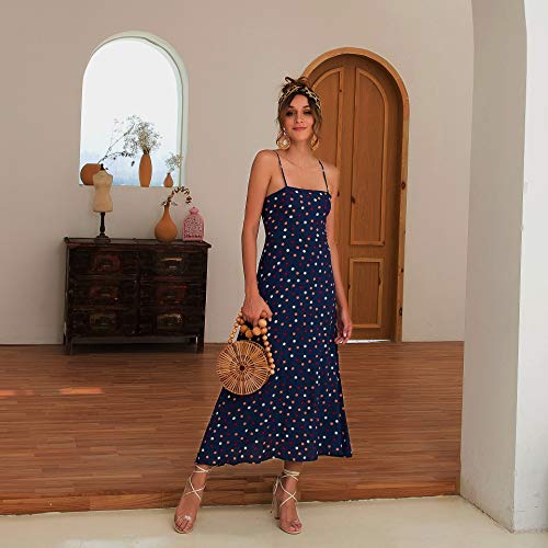ZWH 2020 Amazon Ebay Deseo Estación Independiente Explosión Modelo de explosión Color Onda Point Sling Sexy Vestido Falda Larga (Color : Navy Blue, Size : S)