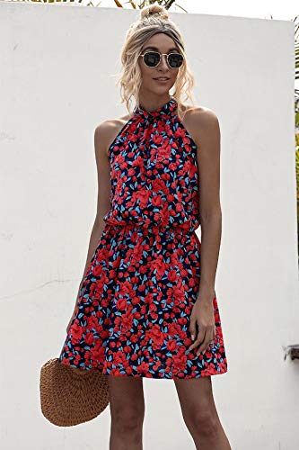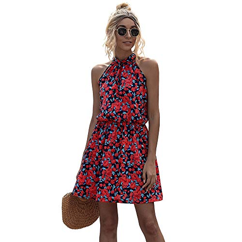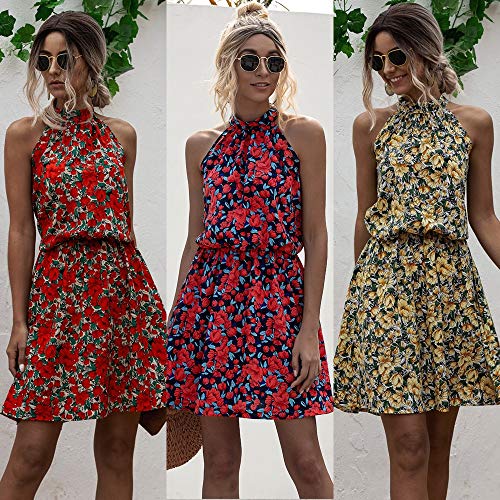 ZWH 2020 estación Independiente de Primavera y Verano Ebay Amazon Hot Sexy Cuello Cuello Colgante Midd Flower Print Vestido Falda Corta Original (Color : Navy Blue, Size : XL)