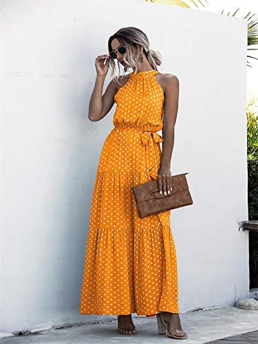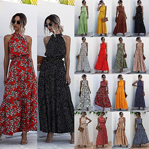 ZWH 2020 Modelos de explosión transfronterizos de Ebay Amazon Stational Station 16 Color Wave Point Punto de impresión Cuello Colgante Correa Vestido Falda Larga (Color : Claret-Red, Size : M)