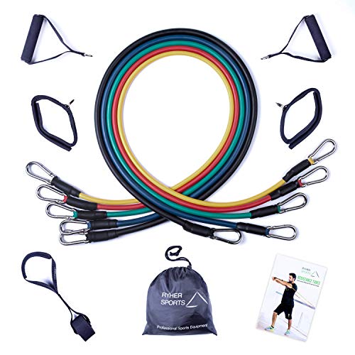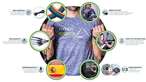 Ryher Gomas elásticas Fitness y Ejercicio - Set de Bandas de Resistencia con Asas, Correas para los Tobillos, Anclaje para Puertas – Deporte en Casa, Gym, Crossfit, Pesas y Musculacion - Pack 45 KG