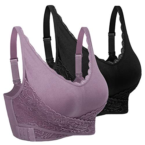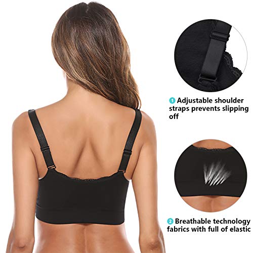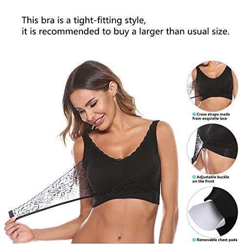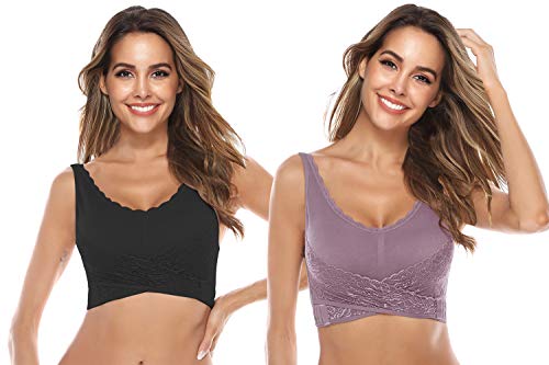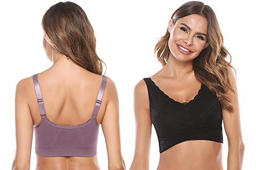 Abollria Sujetador Deportivo para Mujer Encaje Push Up Bra Bralette sin Costuras Cmodo Almohadillas extraíble Bracon Hebilla Frontal con Yoga Corriendo Bailando (1/2/pack)