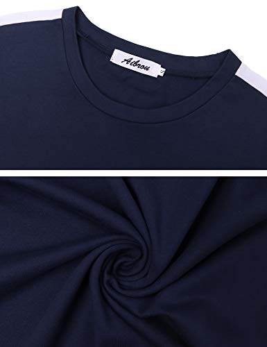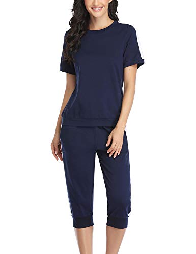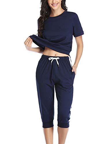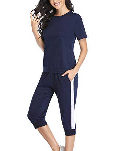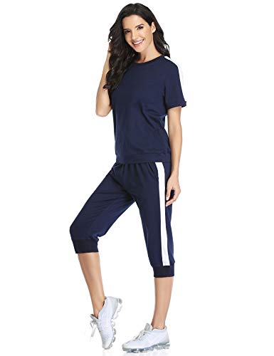 Aibrou Chandal Mujer Completo,Conjunto Chándal Sudadera Manga corta y 3/4 Pantalones Piratas,Trajes de 2 Piezas Deporta Moda de Manga Larga Ropa de salón Corredores,( Armada,M )