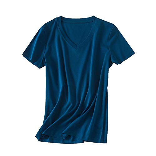 80 Camiseta Blanca de Manga Corta de algodón Mercerizado de Doble Cara Camiseta Femenina de Verano Suelta con Cuello en V de algodón Puro Todo fósforo Camiseta de Media Manga de Color sólido