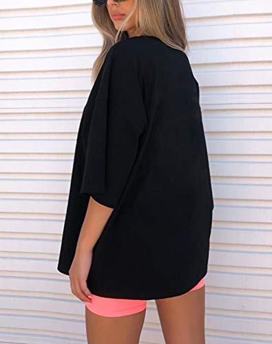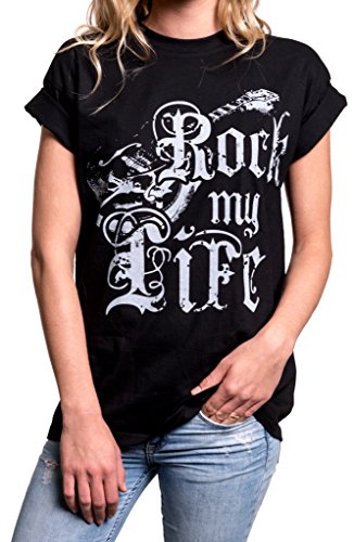 MAKAYA Top con Guitarra Estilo Oversize - Mensaje Rock my Life - Camiseta Musica Punk Rock para Mujer Negro M