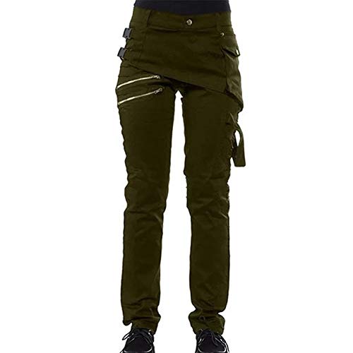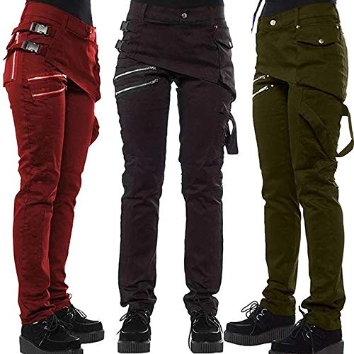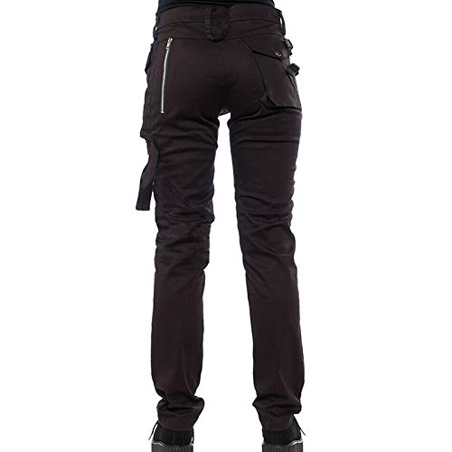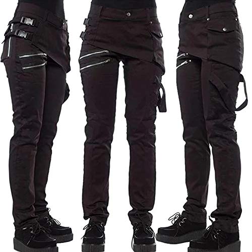 Huaheng Pantalones góticos para Mujer Bolsillos con Cremallera Remaches Pantalones Steampunk Pantalones Estilo Rock Nuevo