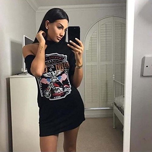 Vestidos Sexy Mujer Verano 2018,Sonnena La Vendimia de Las Mujeres del Hombro Estilo Rock Camiseta Larga Mini Vestido de Cóctel Fiesta Citas Verano para Chica Joven