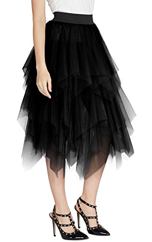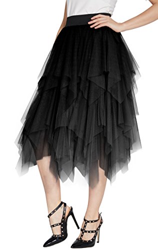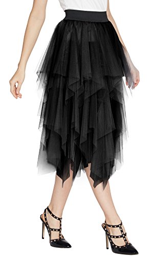 Urban GoCo Mujeres Enagua Falda Corta Midi Tul Damas Cintura Elástica Asimetricas Tutu Falda para Fiesta Danza (XL, Negro)