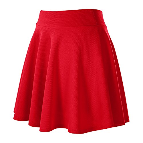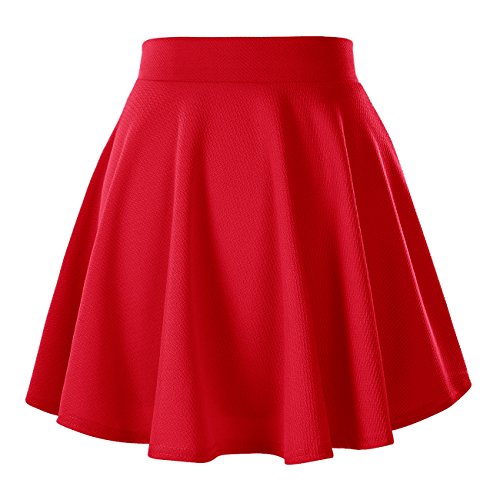 Urban GoCo Falda Mujer Elástica Plisada Básica Patinador Multifuncional Corto Falda (S, Rojo)