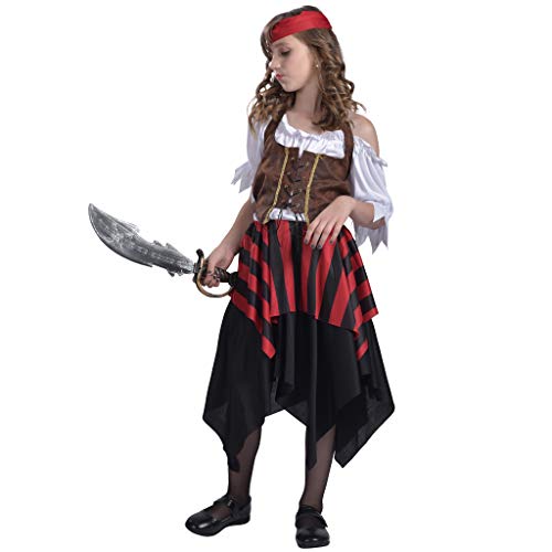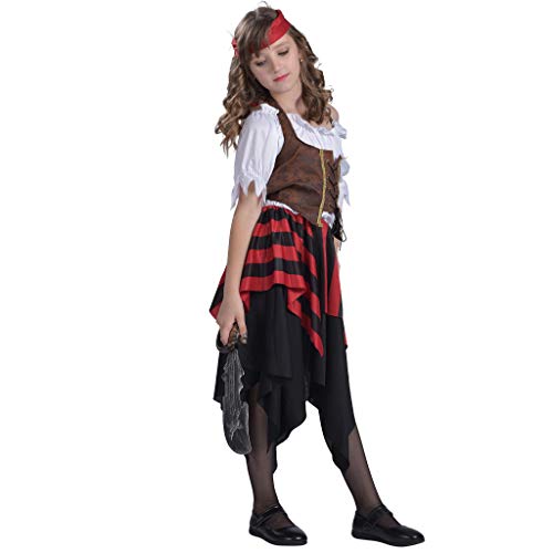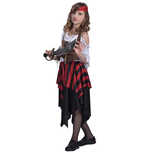 - Incluye Disfraz de moza pirata descarada con falda, top, cinturón y pañoleta para la cabeza