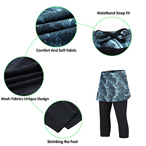 - 【 Rompe con tradicional】 La falda elástica con leggings capri cuenta con una cintura alta, cintura elástica que contornea tus curvas y le da un aspecto aerodinámico.