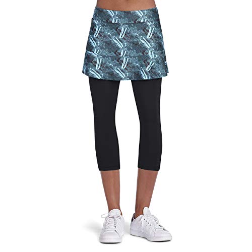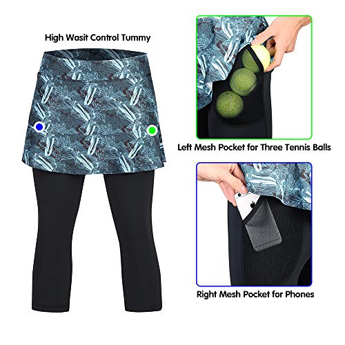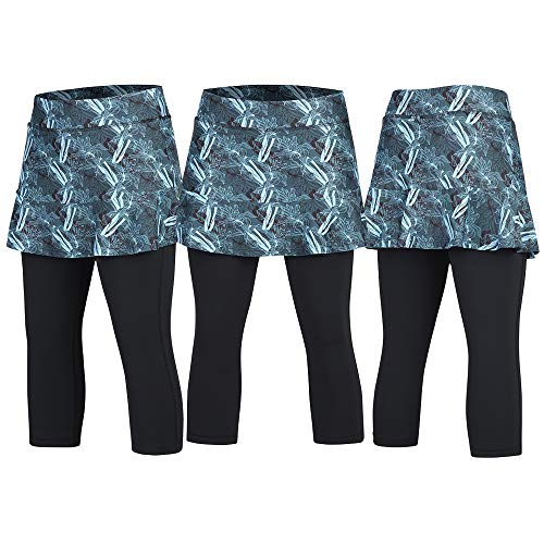 Falda de tenis para mujer, pantalones pirata, mallas con falda, falda deportiva, ropa de tenis 3/4, 2 en 1, azul, M
