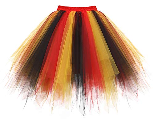 Homrain Mujer Faldas Tul Enaguas Tutu Enagua Underskirt para Rockabilly Vestidos Black-Red-Yellow S
