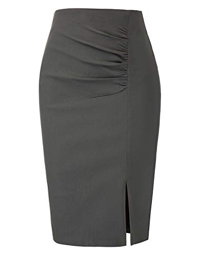 PrettyFashion Mujeres Falda Midi Lápiz Cintura Alta Elasticidad Bodycon Tubo Falda Oficina (Negro, X-L)