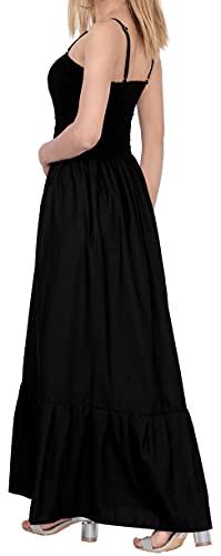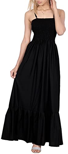 LA LEELA Halloween Suave Traje baño Ropa Playa señoras Ocasionales días Fiesta Prom Noche Vestido Verano túnica Superior Bandeau Llanura Volante Encubrir Vestido Las Mujeres la Falda Maxi Negro_K309