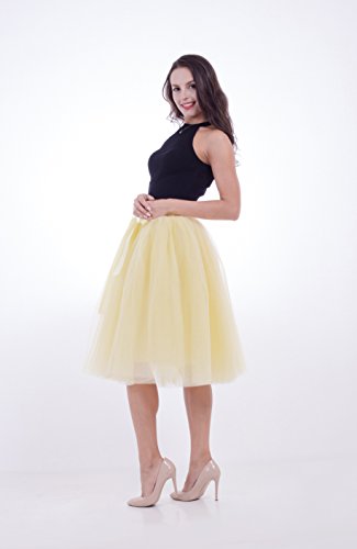 FOLOBE Falda de tutú de Las Mujeres Midi Tulle Faldas 7 Capas de Falda de Falda de Underskirt con el cinturón elástico para el Banquete de Boda