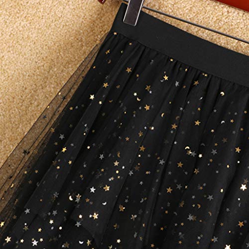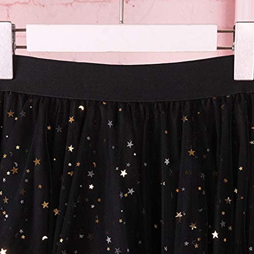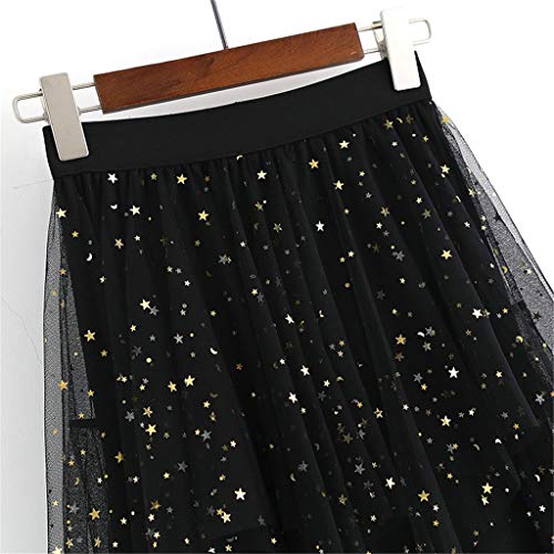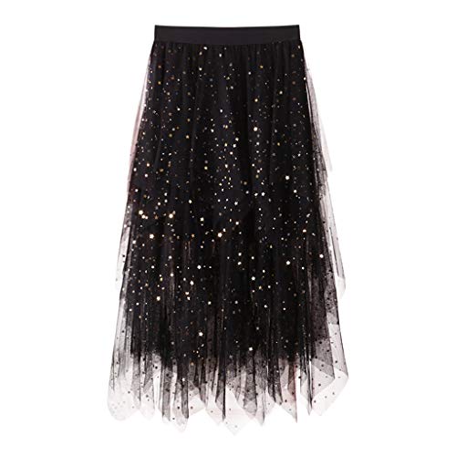 TUDUZ Mujeres Verano Falda Cintura EláStica Alta Falda Tutu De Tul De Malla Falda Plisada De Moda Irregular (B-Negro, Free Size)