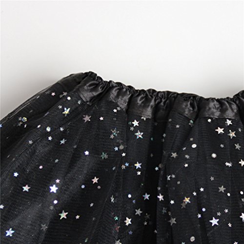 - Capa de superficie con lentejuelas brillantes de estrellas destellos. 3 capas de tul semitransparente, tutú lleno y mullido con revestimiento de satén, cintura elástica, cómodo para niñas.