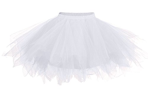 Faldas de Tulle Falda Corta de Cancan de Las Mujeres Retro Falda Rockabilly Traje de Danza Ballet Tutu Pettiskirt Traje de Carnaval (Contorno de Cintura: 23.62-35.4 Pulgadas, Blanco)