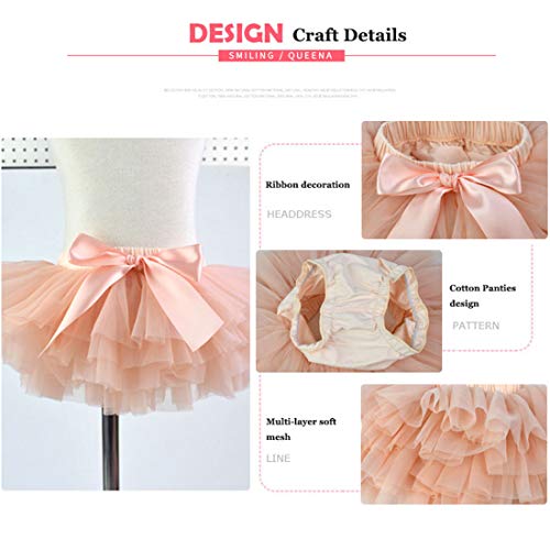 YONKINY Tulle Ballet Tutu Corta para Niñas+Venda Falda Capas Tul De Volantes Princesa para Danza Fiesta Boda Cumpleaños Fotografía (Pesca Roja, Tallas S para 0 a 6 Meses)