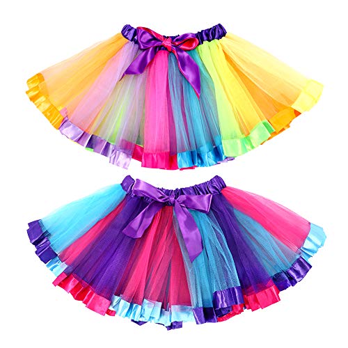 Tacobear 2piezas Falda Tutu para Niñas Dancewear Arco Iris Falda de Tul Danza Falda Girls Rainbow Layered Tutu Skirt