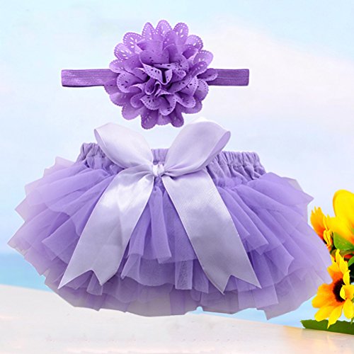 FENICAL Falda de tutú y Diadema de Flores Accesorios de fotografía de niñas bebé Vestido de cumpleaños recién Nacido Sombrero Talla S (Violeta)