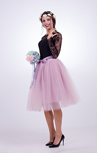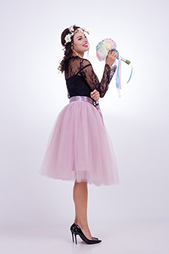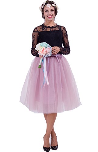 FOLOBE Falda de tutú de Las Mujeres Midi Tulle Faldas 7 Capas de Falda de Falda de Underskirt con el cinturón elástico para el Banquete de Boda