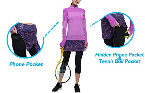 Westkun Pantalones de Falda de Mujer Corte de Hendidura Deportes Tenis Golf Rock Legging 3/4 Tela elástica 2 en 1(Brillante Impresa,L)
