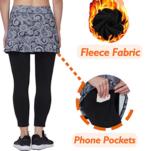 Westkun Pantalones de Falda de Mujer La Altura del Tobillo con Forro Polar Corte de Hendidura Deportes Tenis Golf Rock Legging Tela elástica 2 en 1