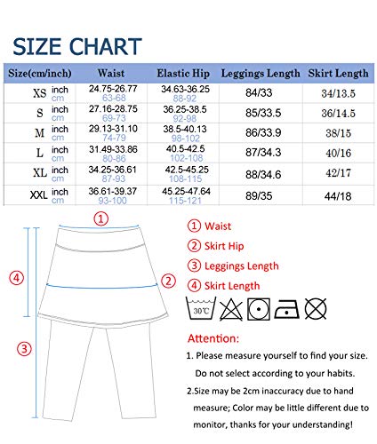 - 【Material】: 90% poliéster y 10% elastano, que es increíblemente suave y un ajuste seco cómodo que lo mantiene abrigado y cómodo durante las actividades de alto impacto; elija una talla antes de medir su cintura al principio y obtenga un legging con faldón del tamaño correcto, si no estás seguro de tu talla.