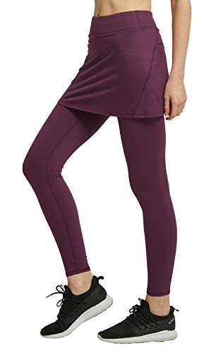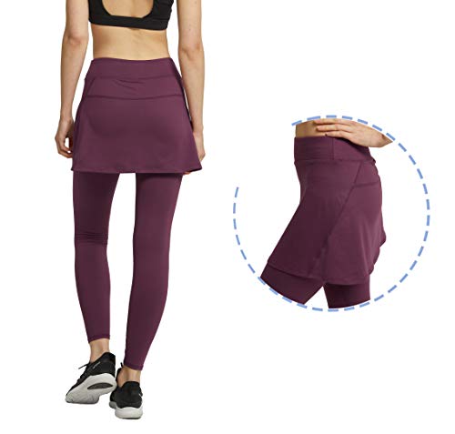 Westkun Pantalones de Falda de Mujer La Altura del Tobillo Skapri de Deportes Suaves y InformalesTenis Golf Rock Legging Tela elástica 2 en 1(Borgoña,S)