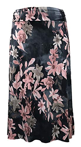 LEEBE Mujer Talla Grandes - Falda Larga Estilo Maxi (1XL-5XL) (2XL (50-52), Floral Malva Negra)