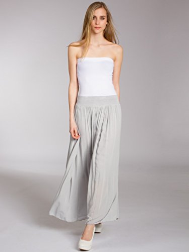 Caspar RO012 Falda Plisada de Verano para Mujer Falda Larga Casual, Talla:Talla Única, Color:Gris (Claro)