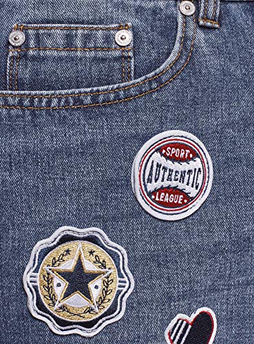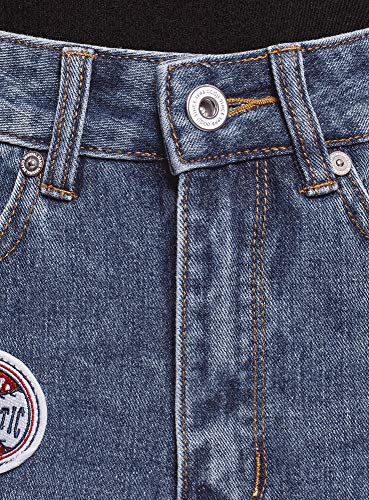 oodji Ultra Mujer Falda-Lápiz Vaquera con Parches y Borde Inferior No Elaborado, Azul, ES 34 / XXS