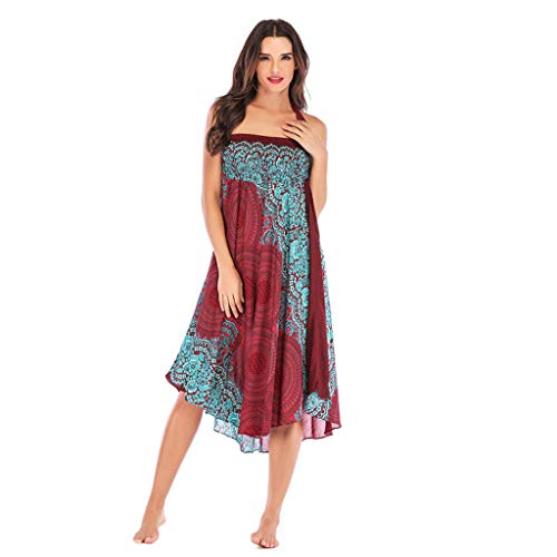 Rawdah_Faldas Mujer Largas Elegantes Faldas Mujer Cortas Verano Fiesta Originales Mujer Hippie Bohemia Gitana Boho Flores Elástico Cintura Floral Halter Falda