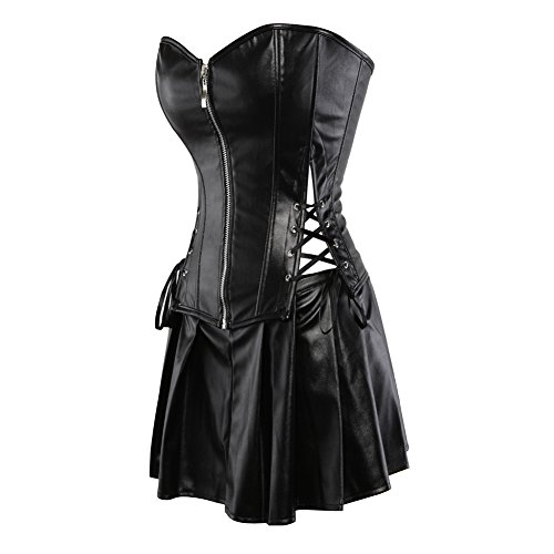 Grebrafan De Lujo Clásico Corset Imitación Cuero Corsé Mini Falda Conjunto (EUR(38-40) XL, Negro)