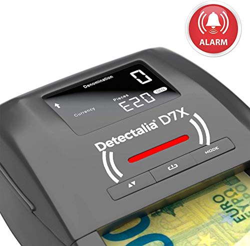Detectalia D7X - Detector automático de billetes falsos con cable de actualización, 100% detección y listo para los nuevos billetes - 14 x 12 x 6 cm