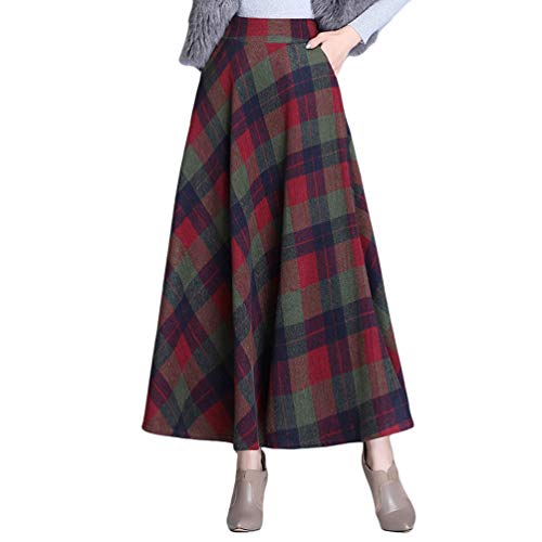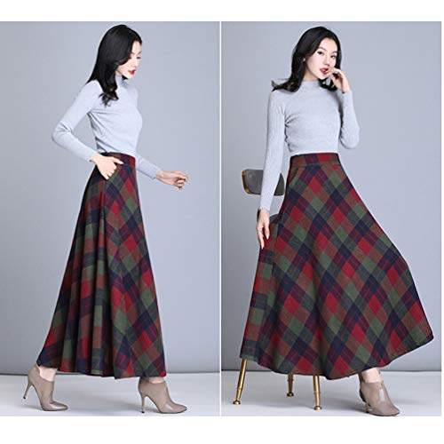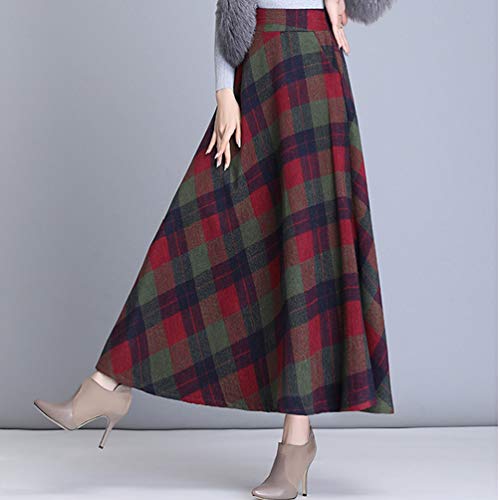Byqny Mujer Tartan Falda Cuadros Faldas Largas Estampadas Invierno Elegantes Falda Larga Rayas Altas de Cintura Asimetrica Cuadros Talla Grande A-Line 6# Rojo Verde 2XL
