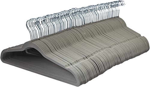 Amazon Basics - Perchas de terciopelo para trajes - Paquete de 100, Gris