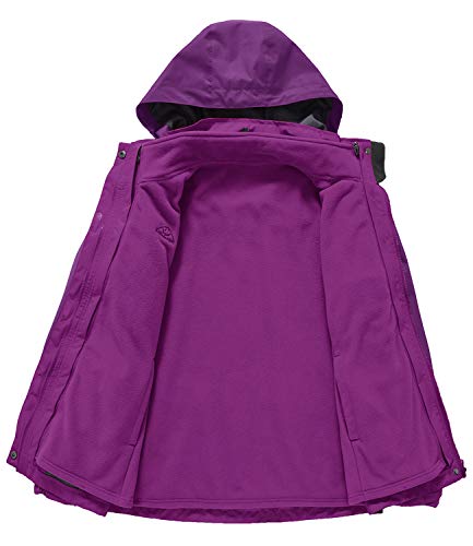 donhobo Chaqueta de esquí 3 en 1 para mujer con forro polar, impermeable, resistente al viento, cálida, chaqueta doble funcional con capucha desmontable morado L