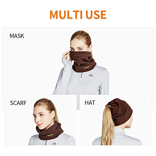 Hewolf Calentador de Cuello de Forro Polar Braga de Cuello Invierno Bandanas Multifuncional Pañuelo Facial Bufanda Tubular Bragas de Cabeza para Moto Ciclismo Esquí Hombre y Mujer Marrón