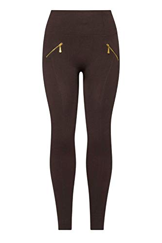 Kendindza - Leggings térmicos para mujer, forrados con forro polar interior, básico, cremallera opaca marrón L-XL
