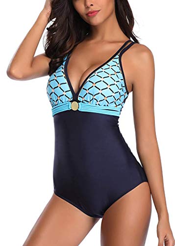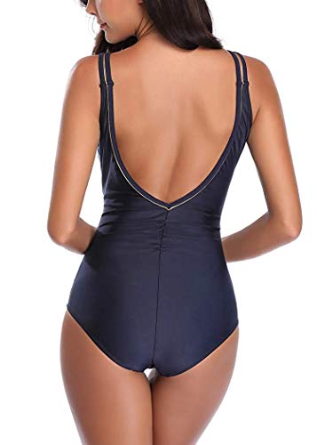 Aibrou BaƱadores Mujer 2021 Trajes de BaƱo de Una Pieza Correas traseras Vendaje BaƱadores Sexys Cuello en V Profundo Playa Monokini, (Azul Marino, XXL)