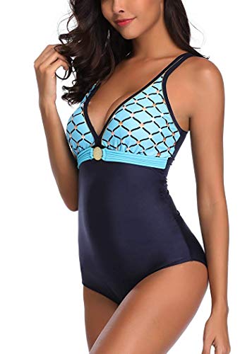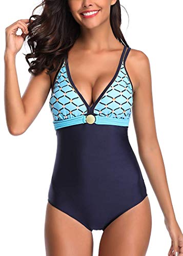 - DiseƱo: traje de baƱo clĆ”sico de una pieza con elegante combinación de colores. El profundo cuello en V garantiza una delicada clavĆcula y una suave curva en el cuello.Traje de baƱo mujer una pieza