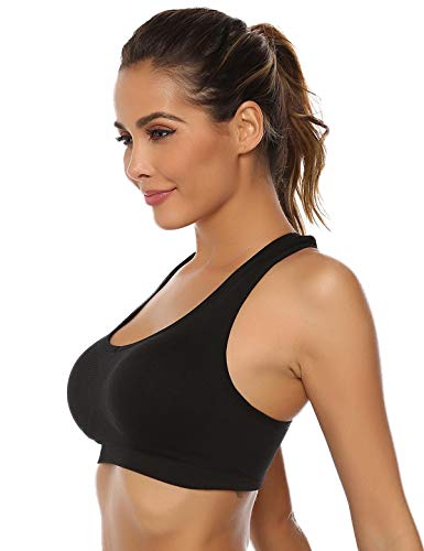 Abollria Sujetador Deportivo para Mujeres, cómodos Suave y Almohadillas Extraíbles,Bra Deporte sin Costuras para Yoga/Fitness/Run/Ejercicio (L, Negro + Gris + Naranja)