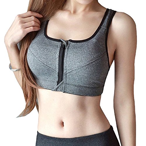 AioTio Sujetador Deportivo Cremallera De Apertura Frontal Sujetador De Entrenamiento Ajustable De Alto Impacto(XXL,Gris)